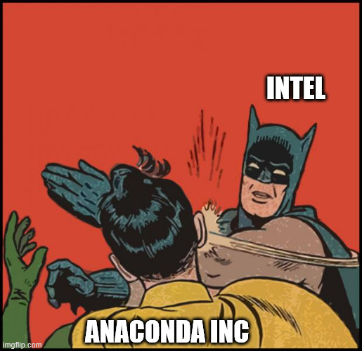 In essence, the sole purpose of existence of Anaconda is to distribute Intel software and more software built around it, without which Anaconda would not exist!